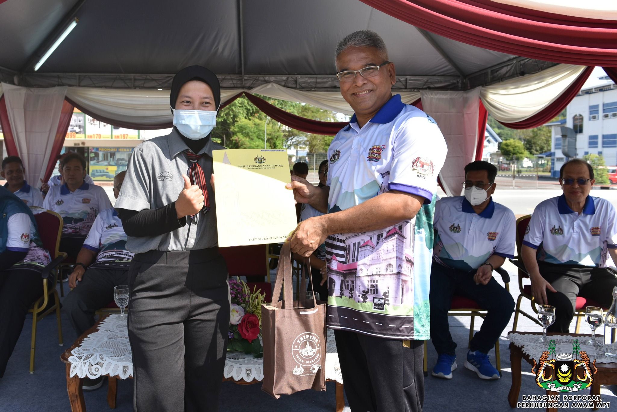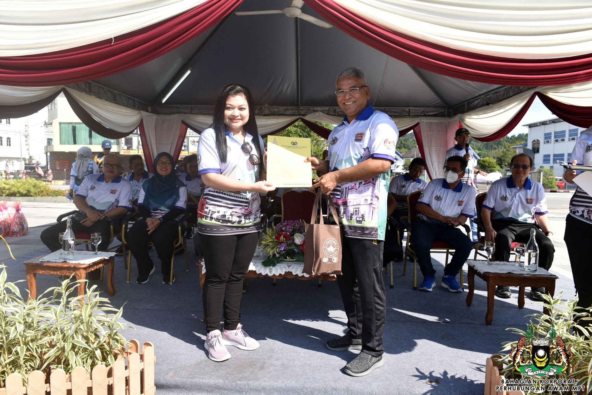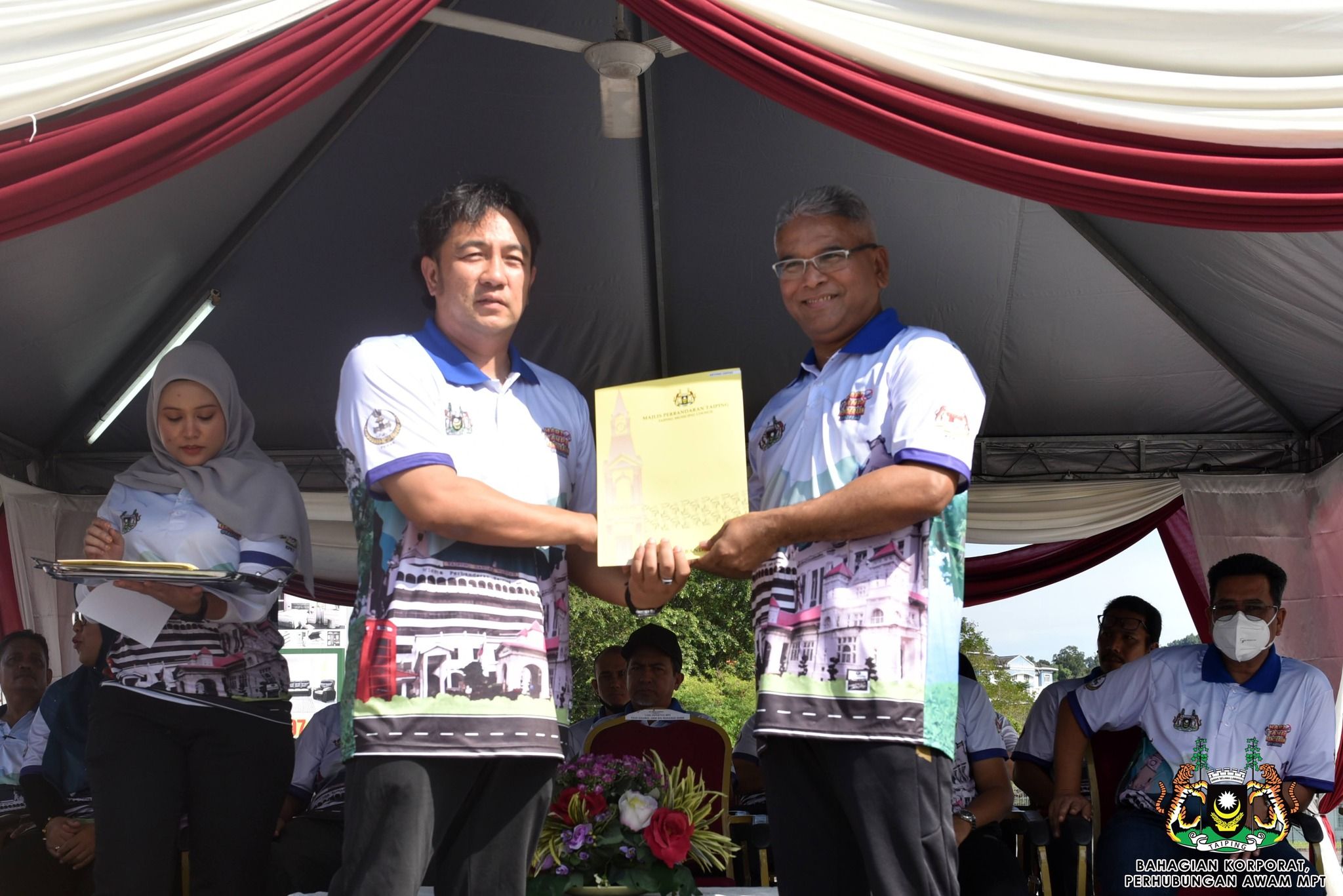 Turut hadir bersama Orang Besar Jajahan Larut Matang dan Selama, YABhg. Orang Kaya Menteri Paduka Tuan Dato' Haji Wan Mohd. Isa Dato' Haji Wan Mohd. Razali, ADUN Trong, YB Puan Jamilah Zakaria, ADUN Kuala Sepetang, YB Encik Mohd Kamaruddin Abu Bakar, Pegawai Daerah Larut Matang dan Selama, YBrs Tuan Mohd Nasrul Menhat, Setiausaha Perbandaran, Encik Kamaruzzaman Kamari, Ketua-ketua Jabatan Daerah LMS dan Ahli-ahli Majlis MPT.